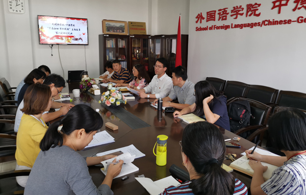 9月25日下午,外语/中德学院召开“不忘初心、牢记使命”主题教育第一次交流研讨会。院党政班子全体成员参加学习交流,教工党支部书记、系部主任、分工会主席列席会议。校主题教育督导组到会指导。
