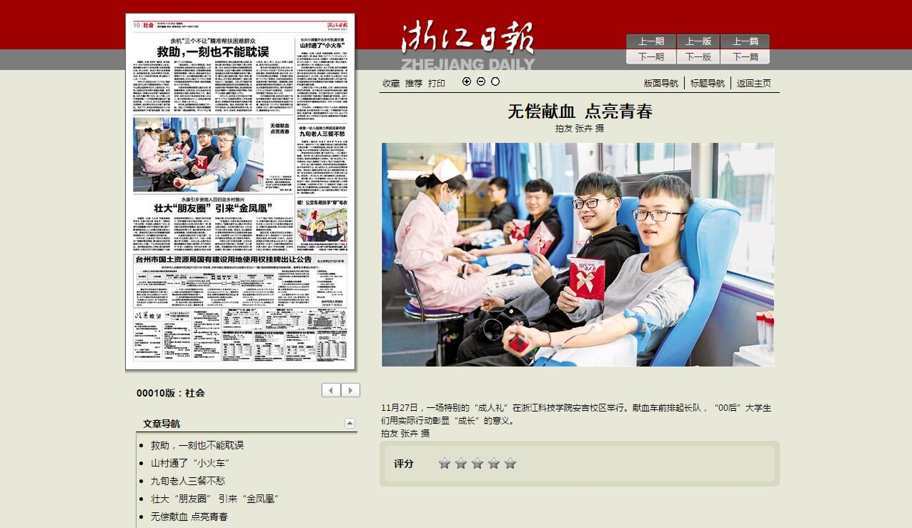 11月27日,一场特别的“成人礼”在浙江科技学院安吉校区举行。献血车前排起长队,“00后”大学生们用实际行动彰显“成长”的意义。