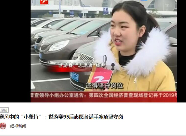 12月11-16日,第14届FINA世界游泳锦标赛(25米)在杭州举行,我校世游赛志愿者在岗服务期间,他们勇于担当、乐于奉献,用智慧和汗水践行了“奉献、友爱、互助、进步”的志愿者精神。服务期间,浙江经济生活频道对我校志愿者进行报道。