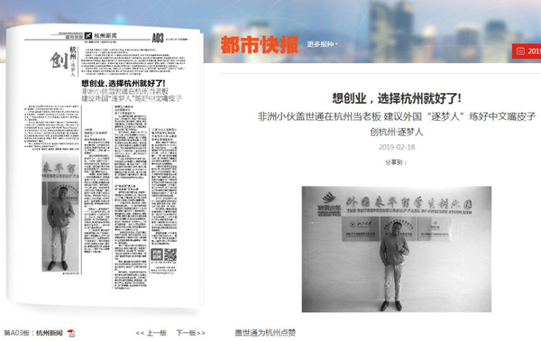 现在,经常有外国朋友向“盖老板”讨教创业的秘诀,他总是笑着说:“想创业,选择杭州就好了。”