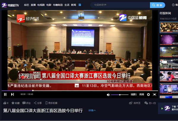 5月11日,第八届全国口译大赛浙江赛区选拔赛在我校举行,浙江经视对比赛进行了报道,视频链接:http://tv.cztv.com/vplay/653262.html。