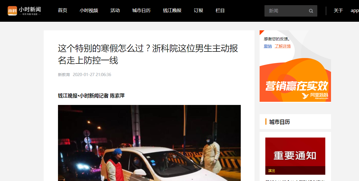 “大年三十,在饭桌上,我听我爸爸说南浔卫计局正在动员力量参加防疫工作,我就主动问爸爸能不能参加。” 张昱帆说,他爸爸是南浔一个医院的普通员工,“我从我爸那了解到,疫情防控工作,重点要把牢排查关、入境关、隔离关,全面筑牢疫情防控网。”