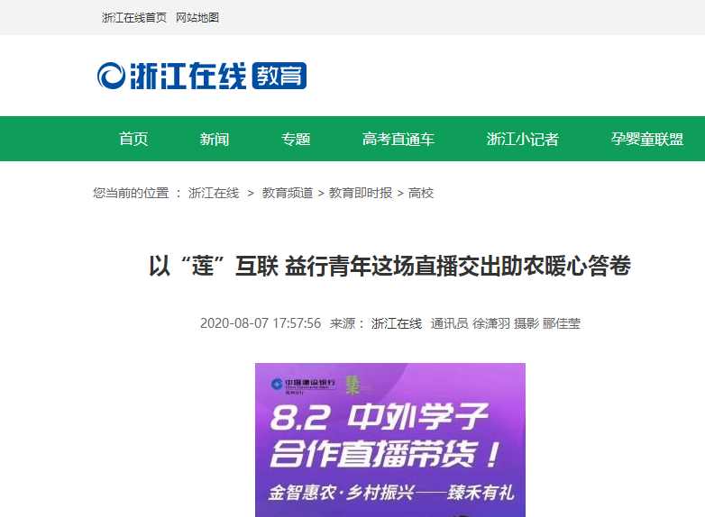 浙江在线:以“莲”互联 益行青年这场直播交出助农暖心答卷