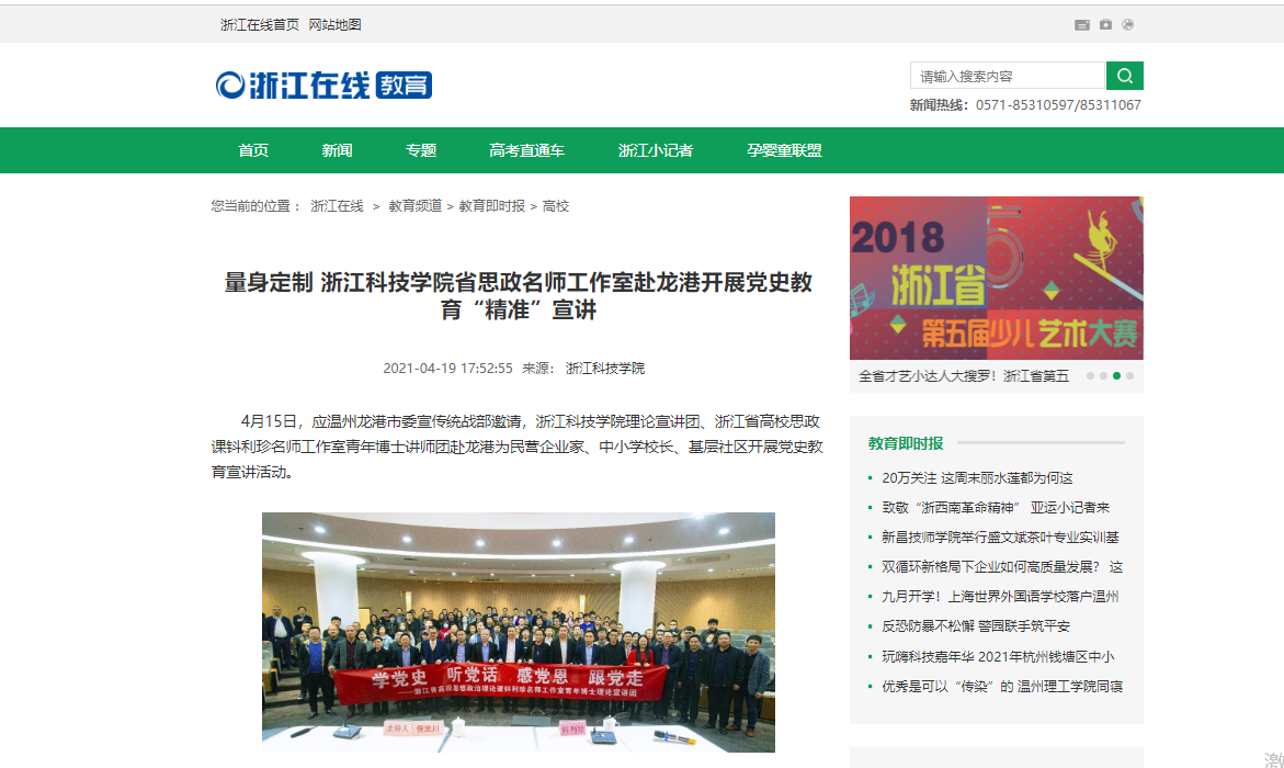 原文链接:量身定制 浙江科技学院省思政名师工作室赴龙港开展党史教育“精准”宣讲