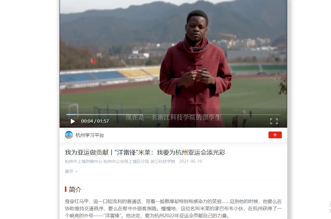 原文链接:我为亚运做贡献丨“洋雷锋”米莱:我要为杭州亚运会添光彩