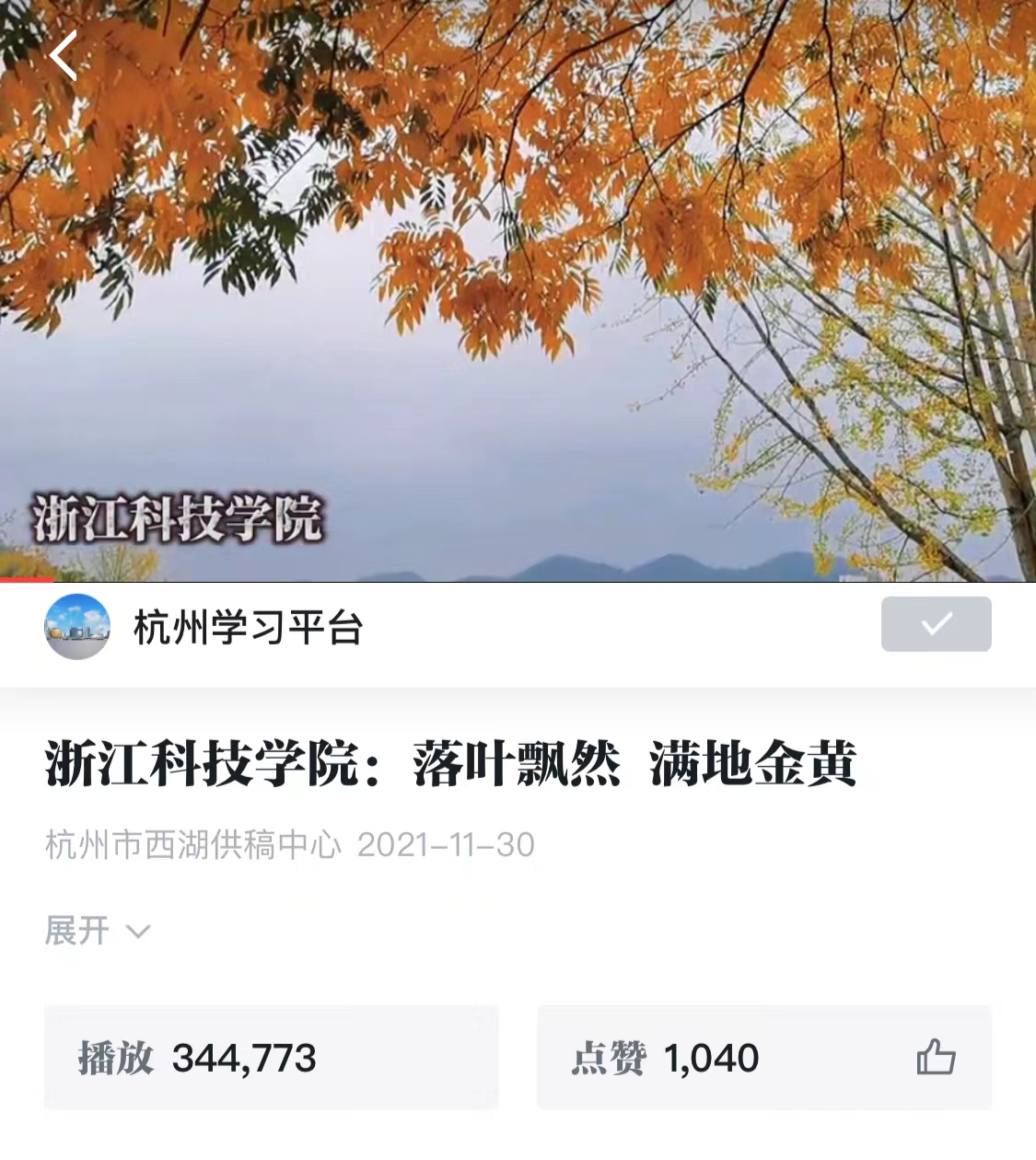 点击观看视频:浙江科技学院:落叶飘然 满地金黄