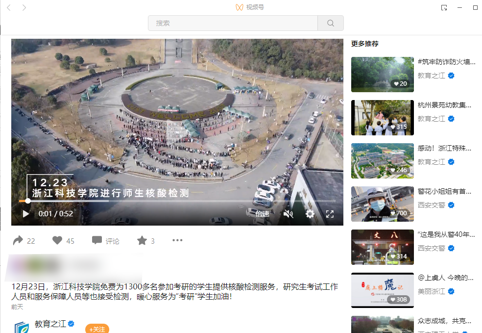 12月23日,浙江科技学院免费为1300多名参加考研的学生提供核酸检测服务,研究生考试工作人员和服务保障人员等也接受检测,暖心服务为“考研”学生加油!