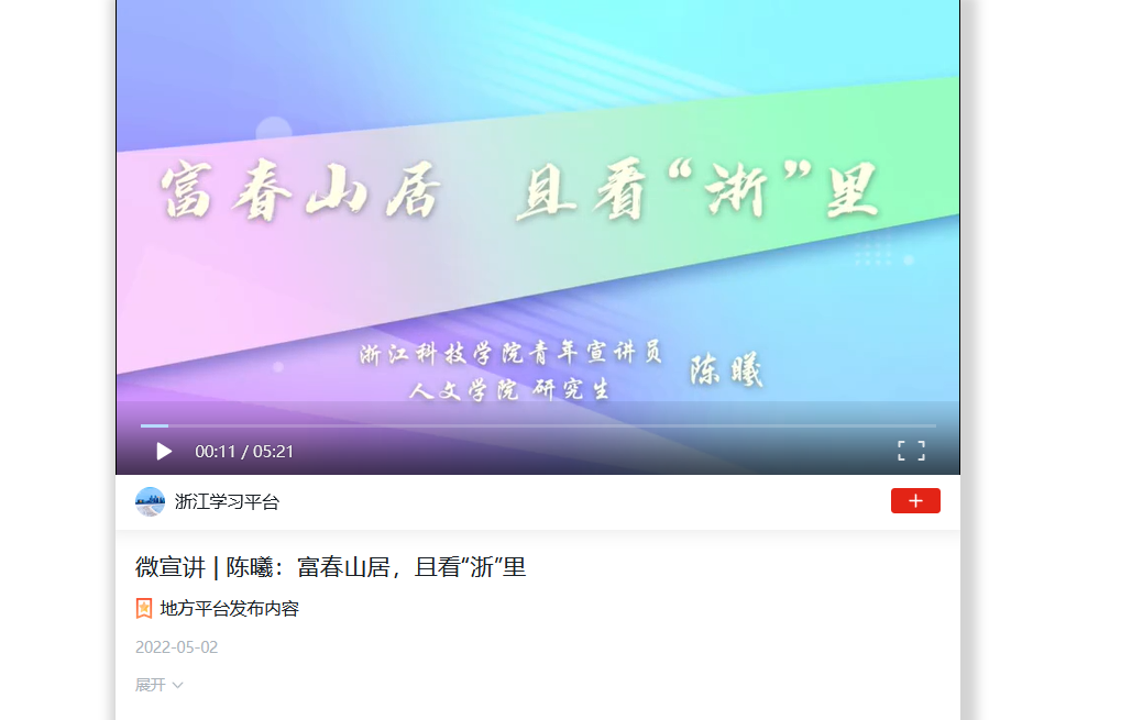 视频链接:微宣讲 | 陈曦:富春山居,且看“浙”里