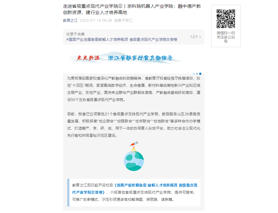 教育之江:走进省级重点现代产业学院⑫丨浙科院机器人产业学院:融中德产教创新资源,建行业人才培养高地
