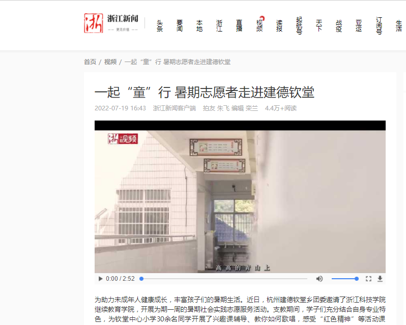 浙江新闻客户端:一起“童”行 暑期志愿者走进建德钦堂
