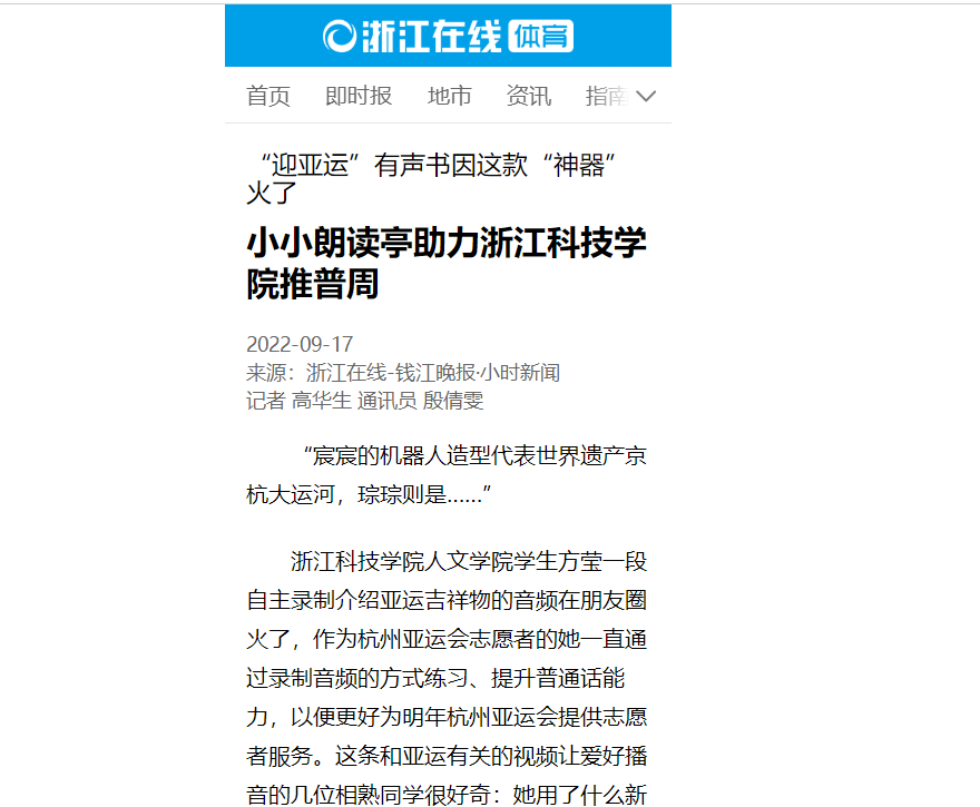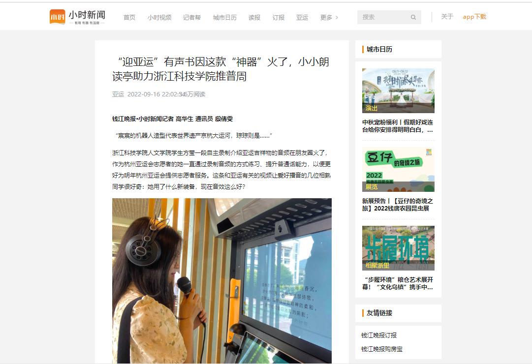 小时新闻客户端:“迎亚运”有声书因这款“神器”火了,小小朗读亭助力浙江科技学院推普周