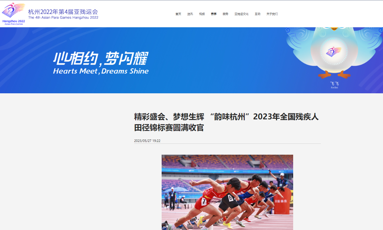 杭州2022年第4届亚残运会网站:https://www.hangzhou2022.cn/paragames/xw/ycydt/202305/t20230527_61294.shtml