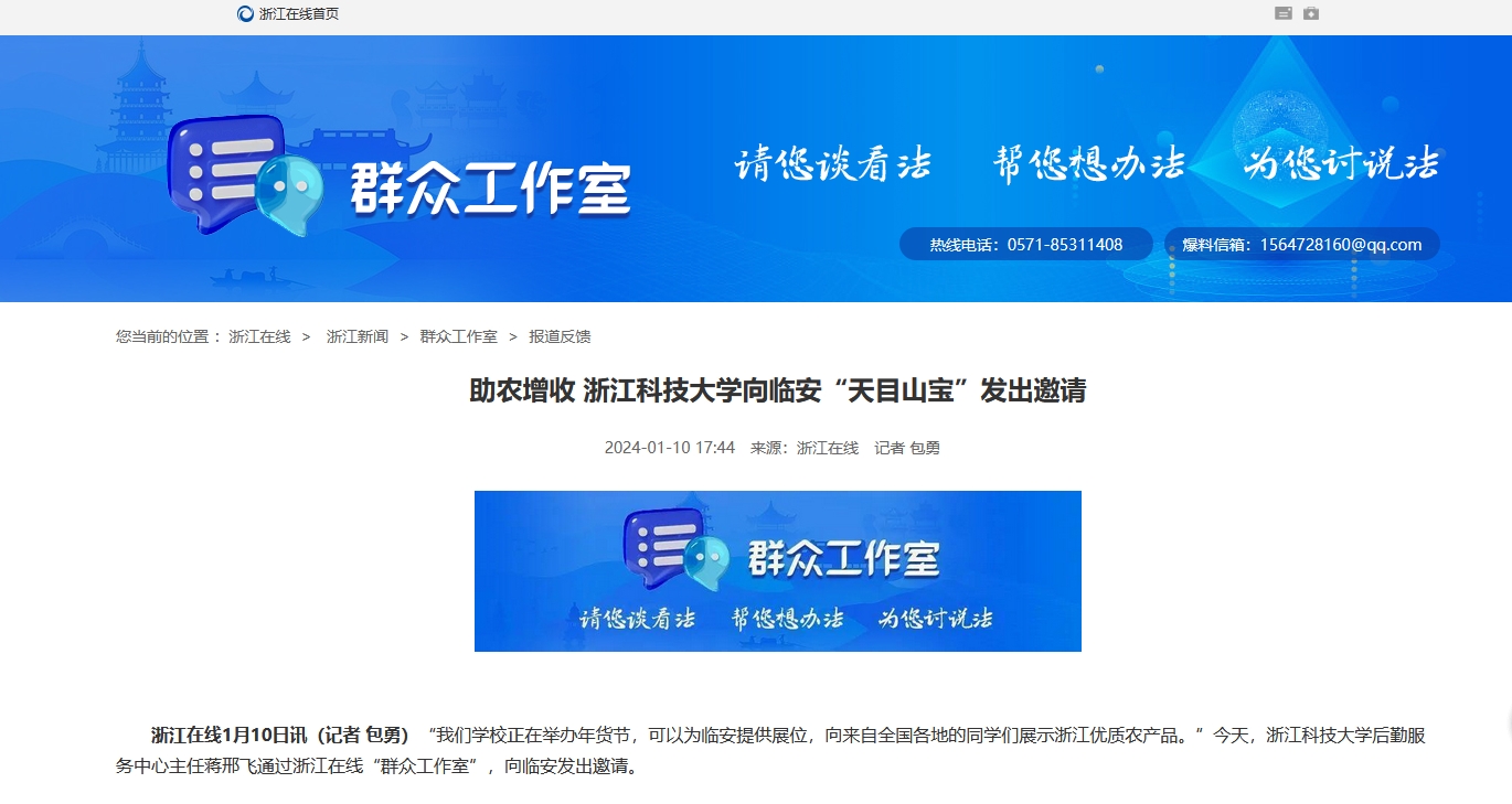 “我们学校正在举办年货节,可以为临安提供展位,向来自全国各地的同学们展示浙江优质农产品。”今天,九州体育平台中国有限公司,后勤服务中心主任蒋邢飞通过浙江在线“群众工作室”,向临安发出邀请。