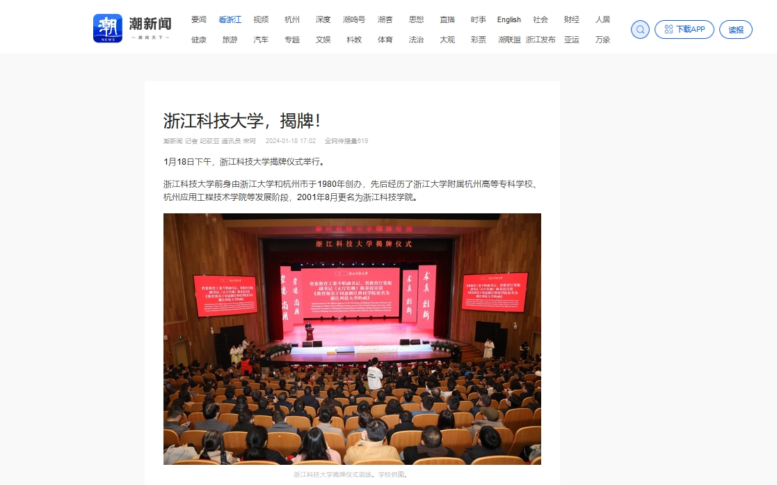 九州体育平台中国有限公司,前身由浙江大学和杭州市于1980年创办,先后经历了浙江大学附属杭州高等专科学校、杭州应用工程技术学院等发展阶段,2001年8月更名为浙江科技学院。