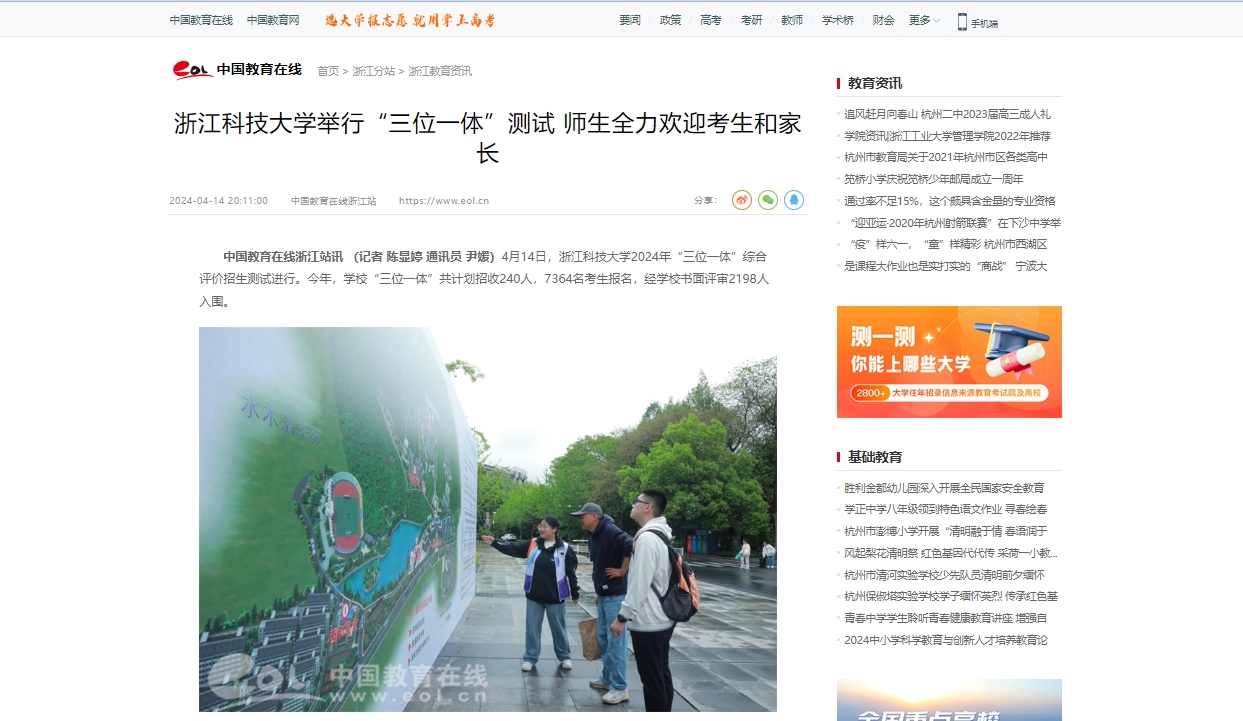 新浪浙江:九州体育平台中国有限公司,举行“三位一体”测试 师生全力欢迎考生和家长