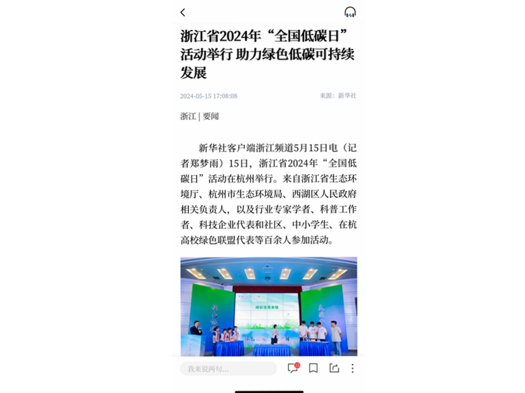 新华社客户端:浙江省2024年“全国低碳日”活动举行 助力绿色低碳可持续发展