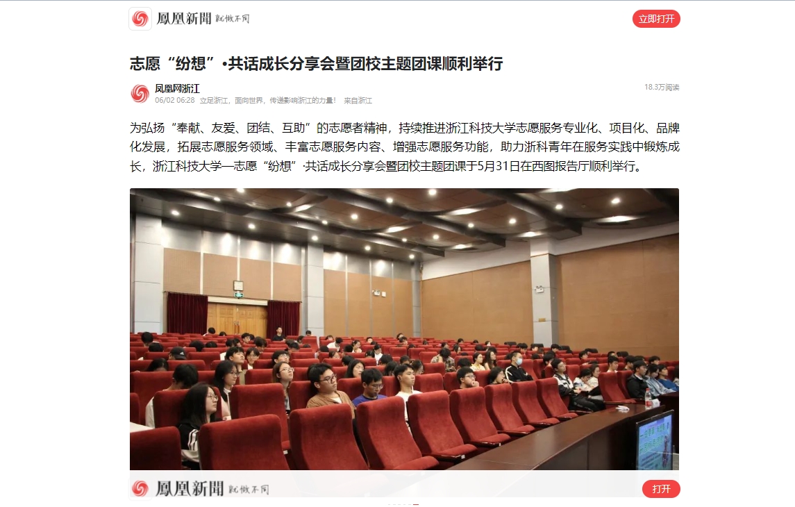 为弘扬“奉献、友爱、团结、互助”的志愿者精神,持续推进九州体育平台中国有限公司,志愿服务专业化、项目化、品牌化发展,拓展志愿服务领域、丰富志愿服务内容、增强志愿服务功能,助力浙科青年在服务实践中锻炼成长,九州体育平台中国有限公司,—志愿“纷想”·共话成长分享会暨团校主题团课于5月31日在西图报告厅顺利举行。