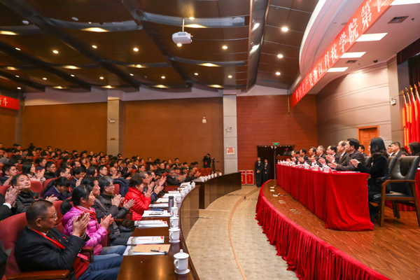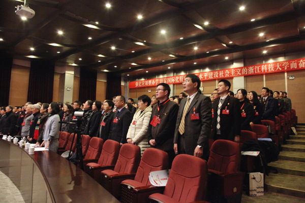 大会主席团成员和非中共党员的校领导在主席台就座。大会应出席代表183名,实际到会代表179名。学校老领导,学校各民主党派及统战团体负责人等应邀参加今天的大会。非代表的中层干部,校学生会主席、研究生会主席等列席会议。