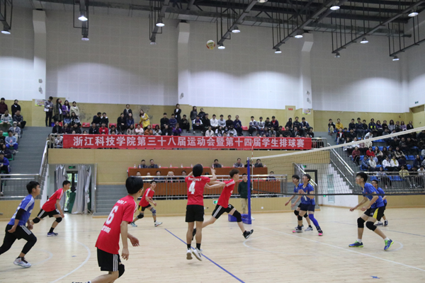 开幕式后,第十四届校排球赛开战。符宁平为比赛开球。