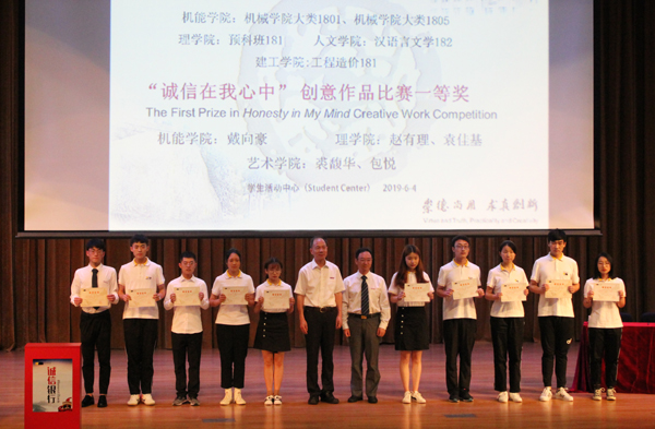 6月4日,2018-2019学年阶段性诚信工作总结会暨学生诚信活动颁奖会在安吉校区大学生活动中心举行。校党委副书记周加敏、副校长冯军出席。