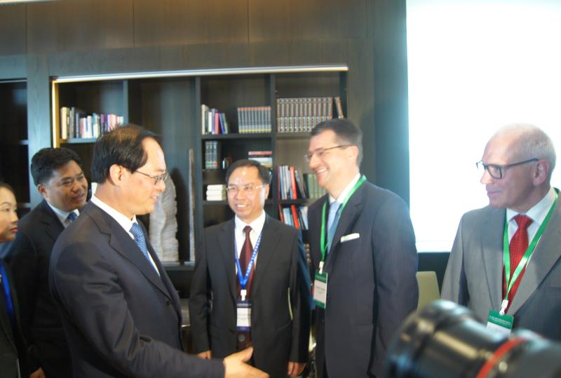 论坛开始前,车俊会见了中德双方与会代表,并与赵东福、菲尔史先生、我校中德合作委员会副主任基尔教授等亲切交谈。