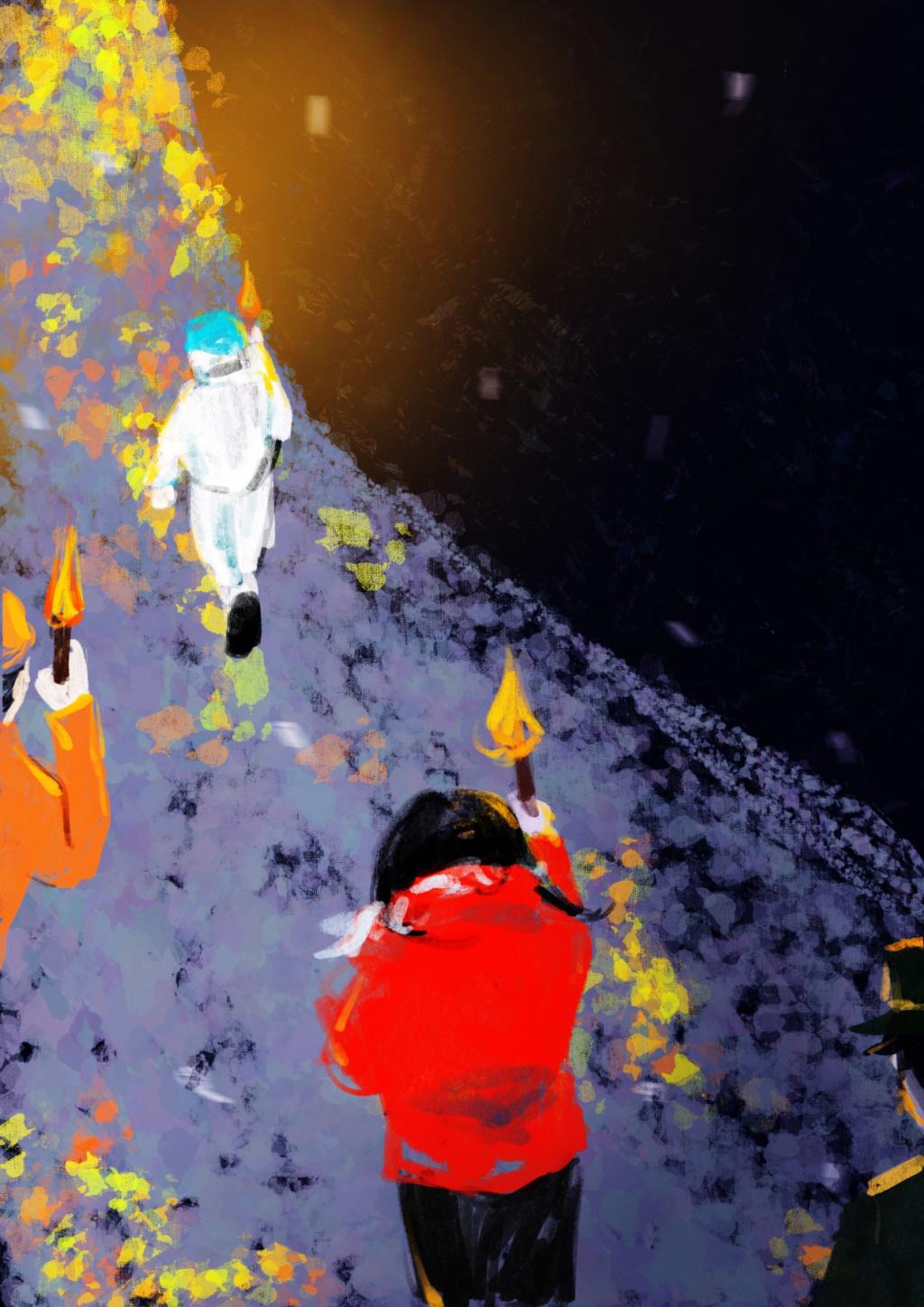 这是一场没有旁观者的全民行动,是一场齐心协力的人民战争。在疫情中,所有人团结在一起,不同的人们为了走出疫情奉献出自己的一份力量,在黑暗中行走着,但是每个人都拿着自己的光,团结在一起时,那份光足以照亮黑暗,照亮我们前进的方向。——动画181 熊燕妮