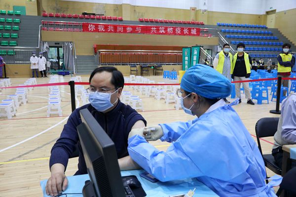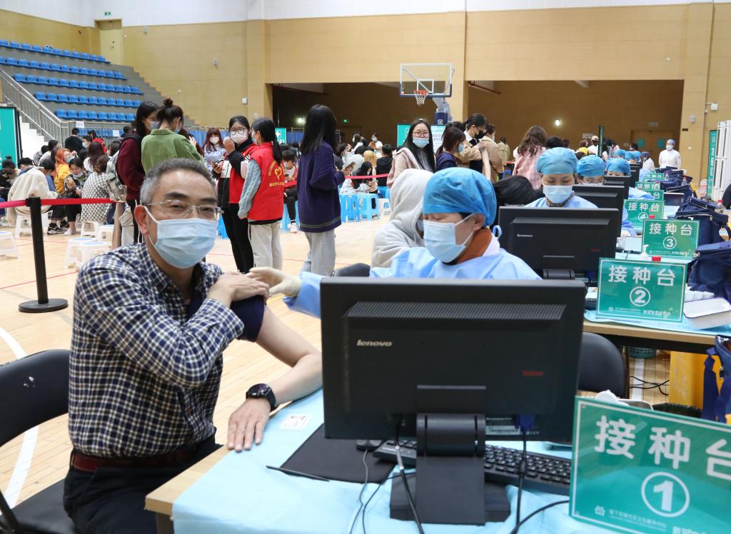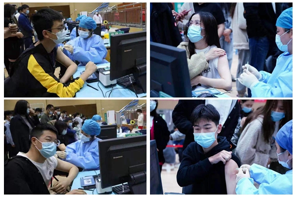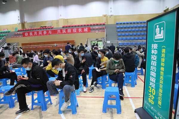 疫苗接种现场,师生本着知情、同意、自愿和免费接种的原则,在医务人员和志愿者的引导下,按照健康筛查、排队等候、预检登记、实施接种、暂留30分钟观察流程,分时段、分批次完成疫苗注射。