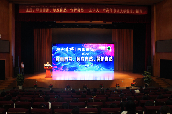 6月2日晚,“两山”书院·“两山”讲坛第2讲在安吉校区举行,浙江大学博士生导师、我校原校长叶高翔教授作题为《尊重自然、顺应自然、保护自然》的报告。安吉县孝源街道党工委、街道办,安吉校区全体教职工及书院学生代表参加。