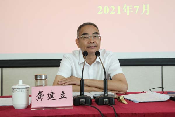 龚建立指出,7月1日,习近平总书记在庆祝中国共产党成立100周年大会上发表重要讲话。在省委刚刚召开的县(市、区)委书记工作交流会上,省委书记袁家军强调,要深入学习贯彻习近平总书记“七一”重要讲话精神,弘扬伟大建党精神,发扬勇于自我革命精神,从理念方法行动机制层面推动建设变革型组织。就我校而言,也迫切需要建设变革型组织,首先要提高塑造变革的思想理念。要有坚定的政治立场,善于从政治上看问题,善于从倾向性、苗头性问题中感知风险;要有敢闯的主动意识,“我要变革”、“引领变革”;要有自觉的特色追求,形成差异化比较竞争优势,将特色作为自觉追求;要有牢固的底线思维,针对高校当前面临的严峻考验,牢牢守住安全稳定底线。
