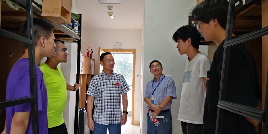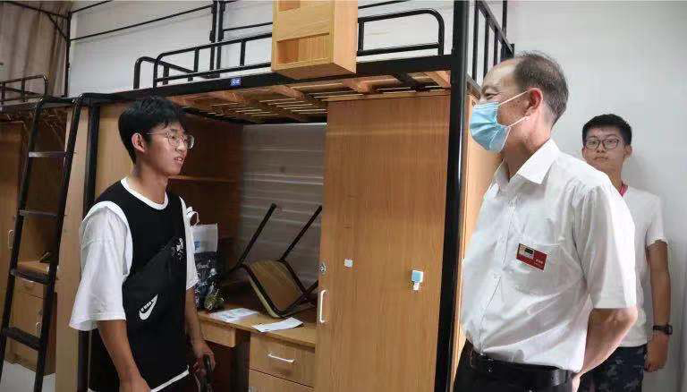 在新生寝室,校领导详细询问了新生的生活情况,勉励他们要勤奋学习,追逐梦想,并预祝他们学业顺利。