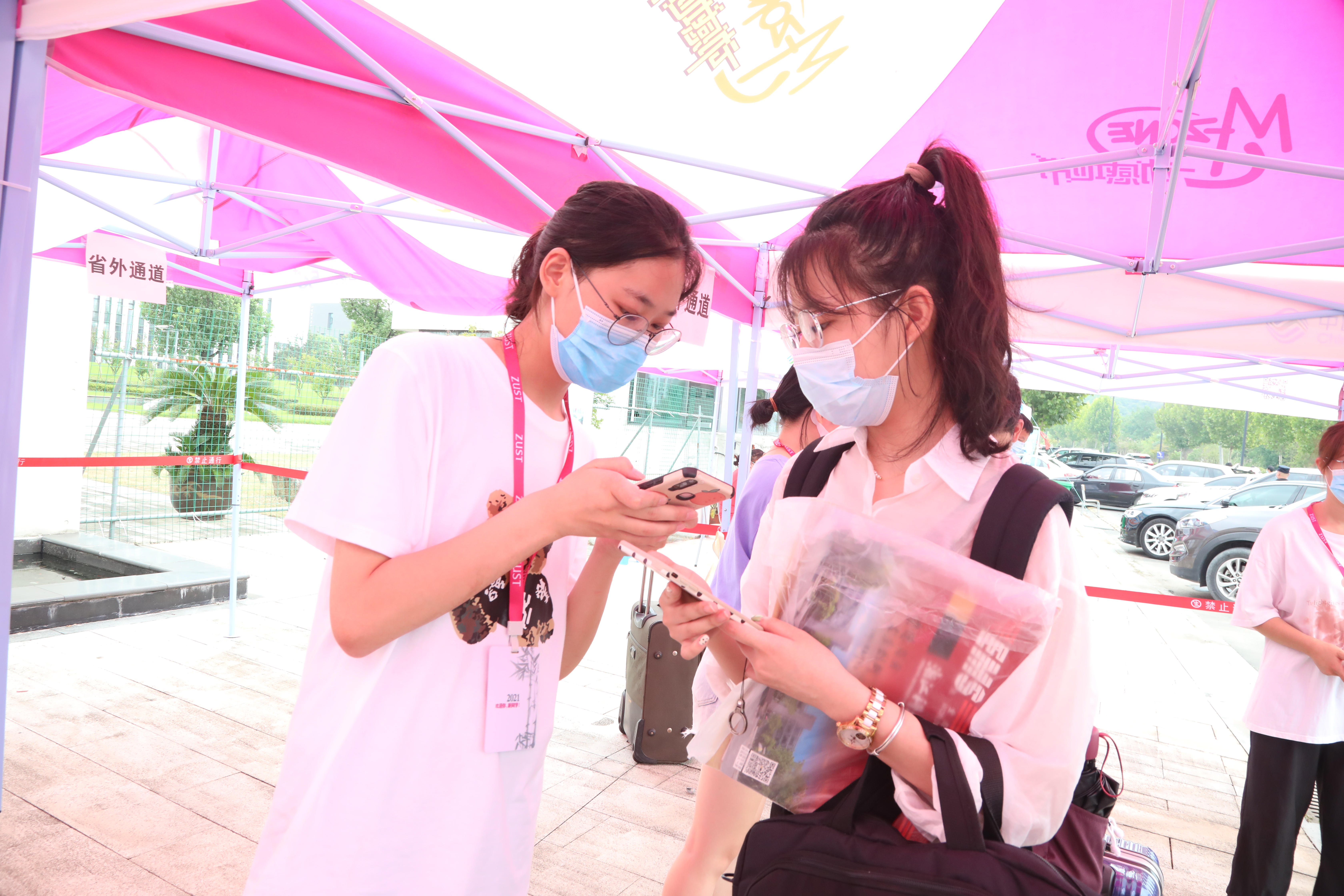 各学院和安吉各书院都布置了各有特色的迎新点。相关部门早早做足准备,为迎接同学们的到来保驾护航。测量体温、查验健康码、出示证件、办理入住手续、进入宿舍整理……各项工作有条不紊地进行。