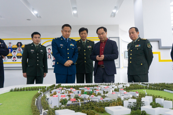 刘建伟一行参观学校中德合作馆、征兵工作站以及学校预征人员训练基地。他对我校在国防教育和征兵工作中取得的成绩表示肯定,对下一步精准征集兵员工作做出指导。