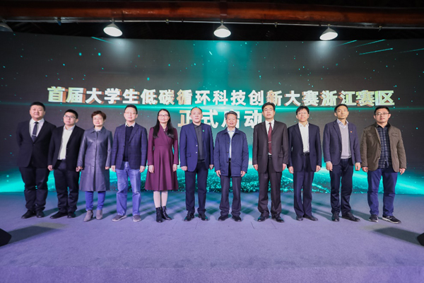 3月5日,首届大学生低碳循环科技创新大赛浙江赛区启动仪式举行。中国生物多样性保护与绿色发展基金会副秘书长肖青,浙江省科协一级巡视员姜长才,浙江省政府法制办一级巡视员吴强军,浙江省社会主义学院副院长沈慧虹,浙江科技学院副校长单胜道,杭州市科协副主席周力军等出席。