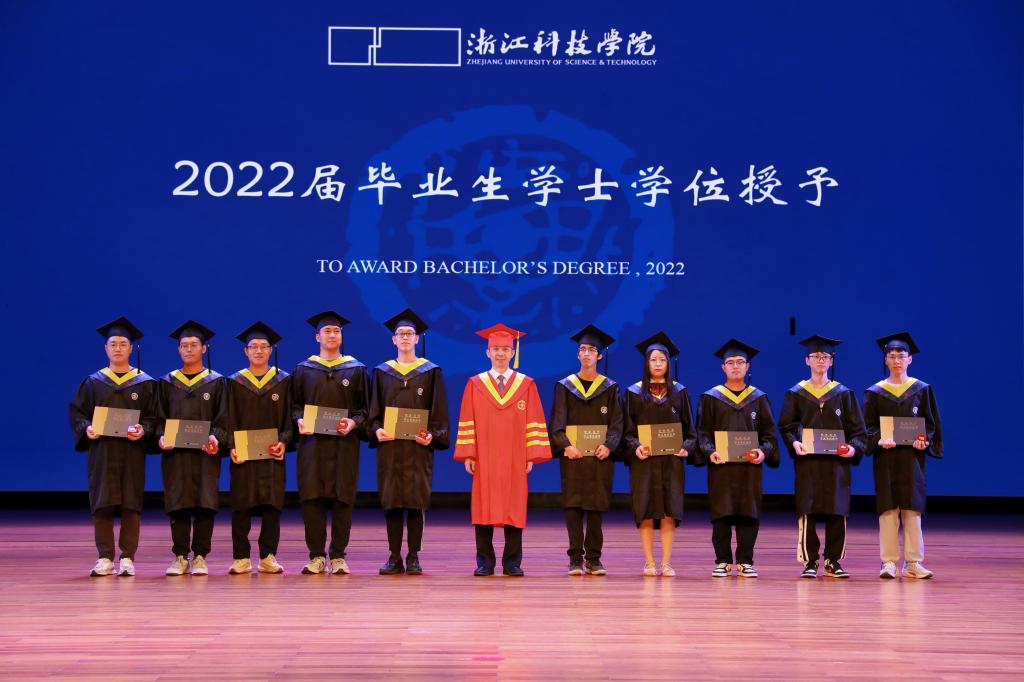 近日,2022届毕业生学位授予仪式举行。校长陈建孟与每位获得学位的毕业生合影。校学位评定委员会委员为每位同学拨正学位帽上的流苏并颁发学位证书。