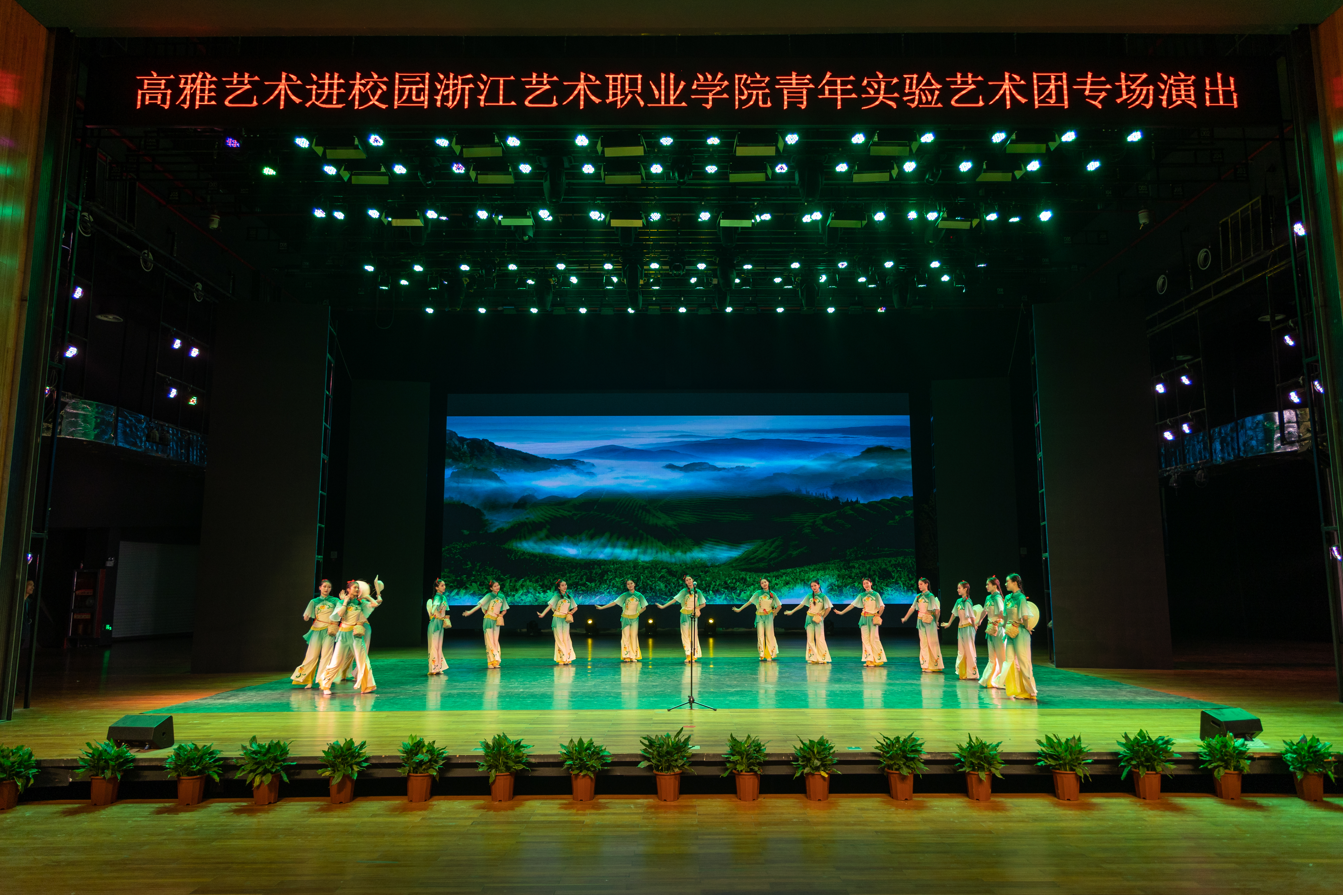 4月22日晚,“高雅艺术进校园”浙江艺术职业学院青年实验艺术团歌舞晚会专场在我校举行,副校长单胜道出席并致辞,各院师生代表共800余人一同欣赏演出。