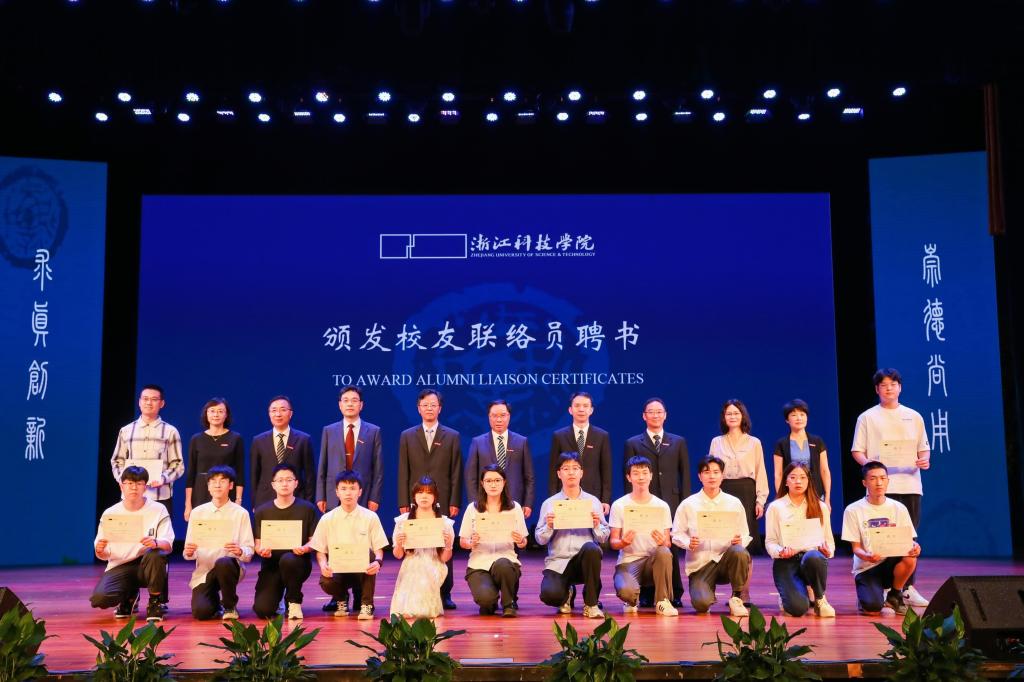 校党政班子成员为毕业生代表颁发学术诚信荣誉证书,为校友联络员代表颁发证书。