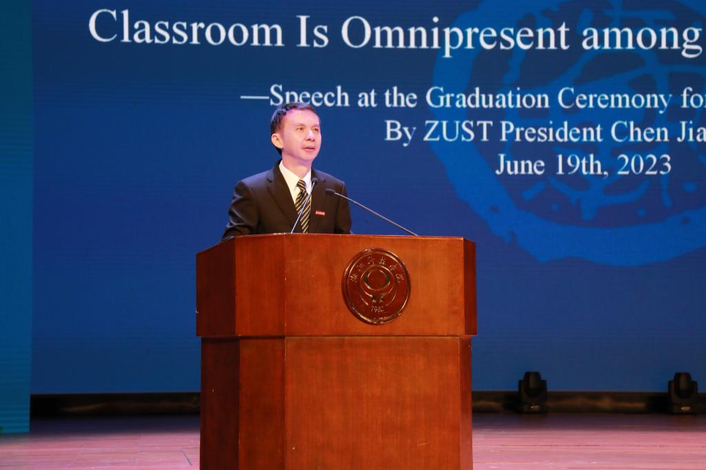 毕业生代表、理学院史琦回忆了与浙科的初遇,回顾浙科求学时光。她表示未来将带着老师的嘱托和母校的期许,用自己的奋斗书写无悔青春。