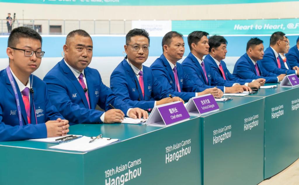 “站在国际赛场上,代表的就是中国裁判的形象。”尹大利老师坦言,当得知被确定为亚运会轮滑项目裁判长,心情非常激动和自豪。“这次担任裁判长,我深感责任重大。轮滑项目速度快、竞争激烈、战术多变,对裁判员要求很高。”作为一名经验丰富的速度轮滑国际级裁判,参加过前两届亚运会、第14届全运会裁判工作,也出任过世锦赛、亚锦标赛等大型赛事裁判,不是第一次做裁判长,但尹老师仍觉得充满挑战,“比赛规则一定要牢记于心,严格执行竞赛规程,不徇私情,秉公执法,给运动员创造公平的竞赛环境。”