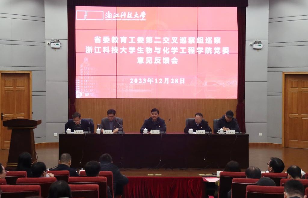 省教育厅组织处副处长林秀峰,省委教育工委第二交叉巡察组全体人员,校纪委书记、监察专员陆爱华,校党委委员、副校长、组织部部长李其朋,学校相关职能部门负责人,生物与化学工程学院全体教职员工参加反馈会。