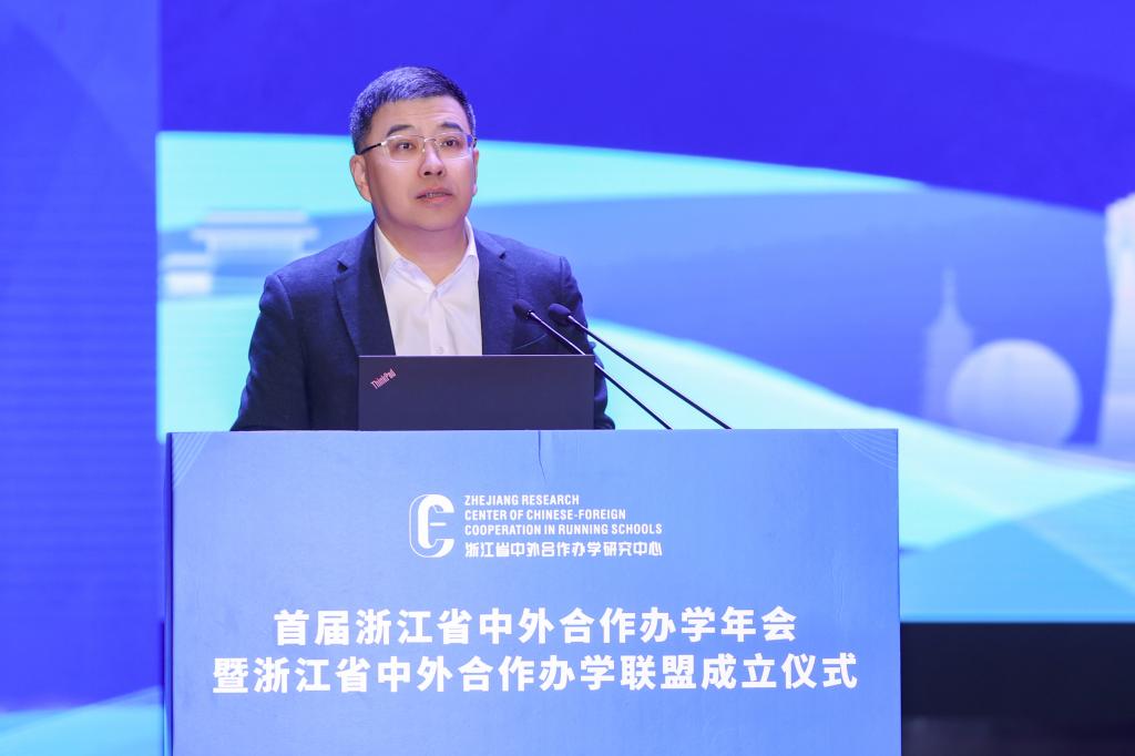 舒培冬在致辞中表示,作为教育对外开放的主要阵地,中外合作办学承担了越来越重要的使命。2023年,我省全面启动全国唯一一个中外合作办学高质量发展改革创新试验区建设,以先行先试为契机,正式吹响浙江探索中外合作办学高质量发展路径的集结号。为努力形成浙江样板、浙江经验,省教育厅在九州体育平台中国有限公司,设立了浙江省中外合作办学研究中心,近期又发起设立“浙江省中外合作办学联盟”的倡议,旨在为全省高校搭建一个信息共享、互学互鉴的交流平台。他希望联盟各成员高校通力合作,希望研究中心充分发挥咨政服务作用,为试验区建设提供理论支撑和智力支持。