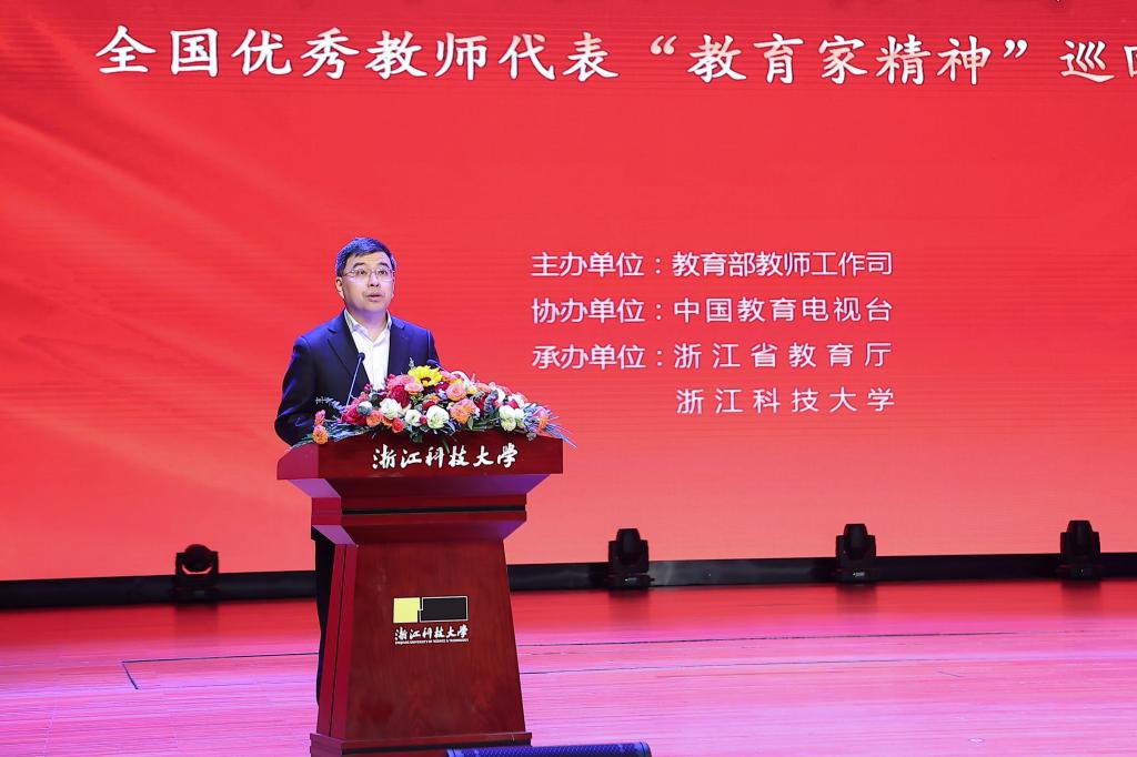 舒培冬致辞,他希望全省广大教师进一步坚定“躬耕教坛,强国有我”使命担当,把教育家精神内化为教书育人能力、教学方式方法,以实际行动投身教育强国建设。他表示,浙江将深入打造弘扬教育家精神高地,聚焦“勇当先行者、谱写新篇章”的新定位新使命,紧扣推进教育科技人才一体化的重要命题,加快推进教育现代化,努力办好人民满意的教育,加快建设教育强省,为省域现代化先行提供坚强支撑。