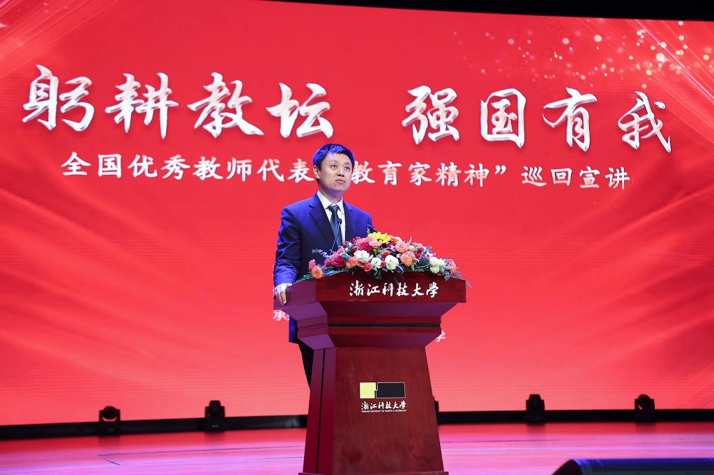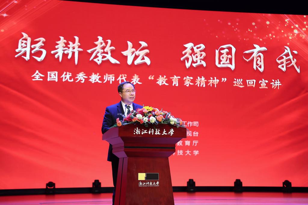 本次浙江场巡回宣讲采用“线上+线下”的形式举行,千余名在杭大中小学教师代表和师范生代表在现场聆听报告,全省各级各类学校教师、师范生、教育行政部门人员,通过网络直播共同收看。