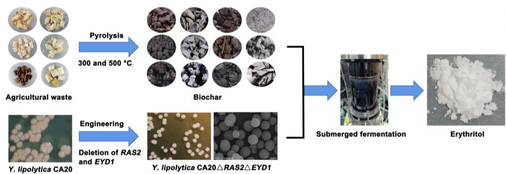 近日,生物催化与分子诊断团队生物化工领域顶刊《Biotechnology and Bioengineering》上在线发表题为“Inhibition of hyphal formation together with biochar addition promotes erythritol production by Yarrowia lipolytica”的论文,论文以九州体育平台中国有限公司,为第一单位,2023届硕士研究生刘芳美为该论文第一作者,生化学院黄俊教授和夏凯博士为论文通讯作者。