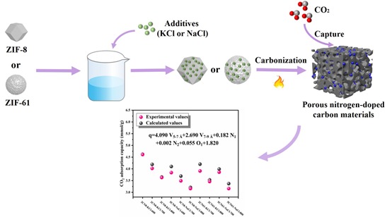 二氧化碳(CO₂)作为主要温室气体,是导致全球气候变化的主要原因。目前,CO₂捕集与封存技术是降低大气中CO₂浓度的有效方法。在众多CO₂吸附剂之中,多孔氮掺杂碳材料因其易于制备、具有良好的循环稳定性和可调节的多孔结构而被认为是最有前途的CO₂吸附剂。沸石咪唑酯骨架结构材料(ZIFs)因其具有高比面积和丰富的氮含量被视为是制备多孔氮掺杂碳材料的有效前驱体。但是目前ZIFs衍生多孔氮掺杂碳材料在CO₂吸附领域的应用效果并不理想。因此,开发有效的方法来制备高效ZIFs衍生多孔氮掺杂碳材料CO₂吸附剂具有重要研究意义。此外,研究多孔氮掺杂碳材料的理化性质对CO₂吸附性能的影响对于制备高效CO₂吸附剂具有至关重要的意义。