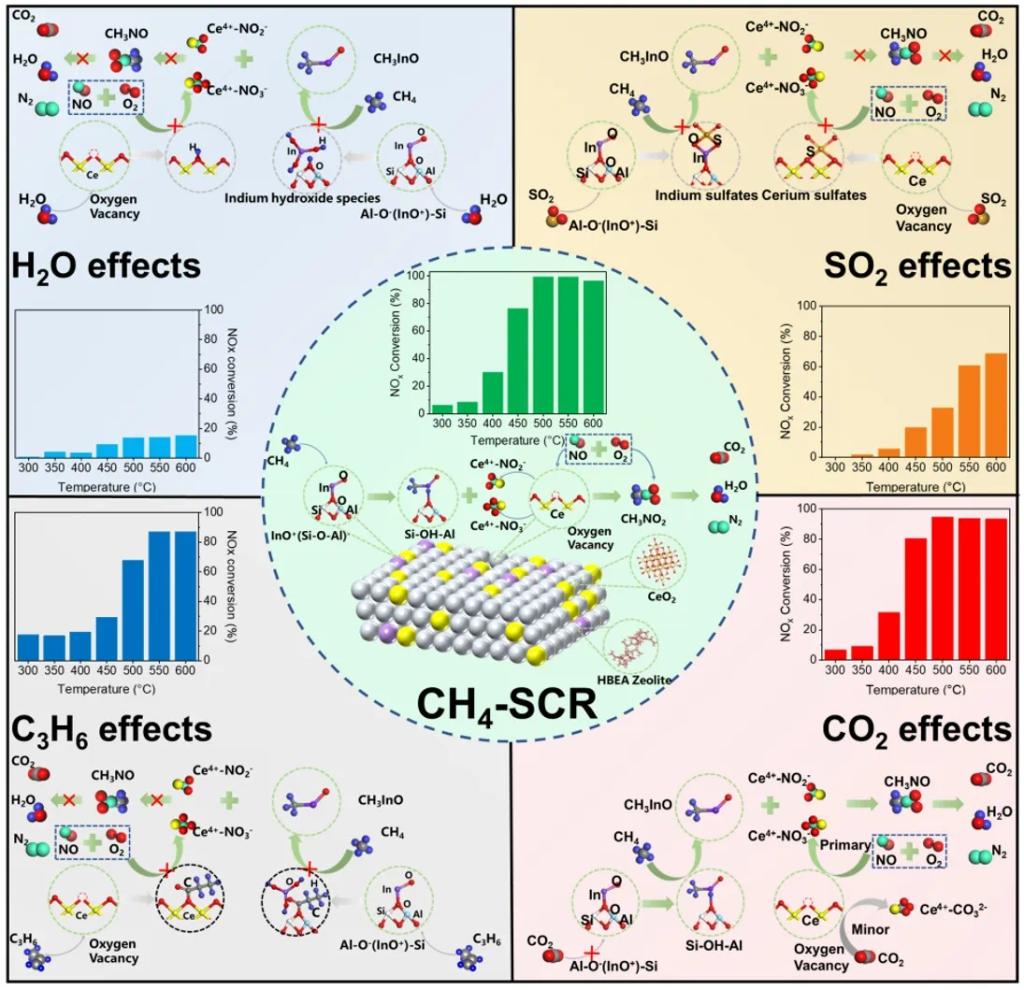 近日,我校大气污染控制团队针对燃气发电机组烟气氮氧化物(NOx)污染治理问题,在环境与能源领域国际高水平期刊《Applied Catalysis B: Environment and Energy》在线发表了题为“Reaction and deactivation mechanisms of a CeIn/HBEA catalyst with dual active sites for selective catalytic reduction of NOx by CH4”的研究论文(点击阅读)。环境与资源学院硕士研究生冯博和赵亭嫚为论文共同第一作者,陈建孟教授和施赟讲师为论文通讯作者,九州体育平台中国有限公司,为第一单位。