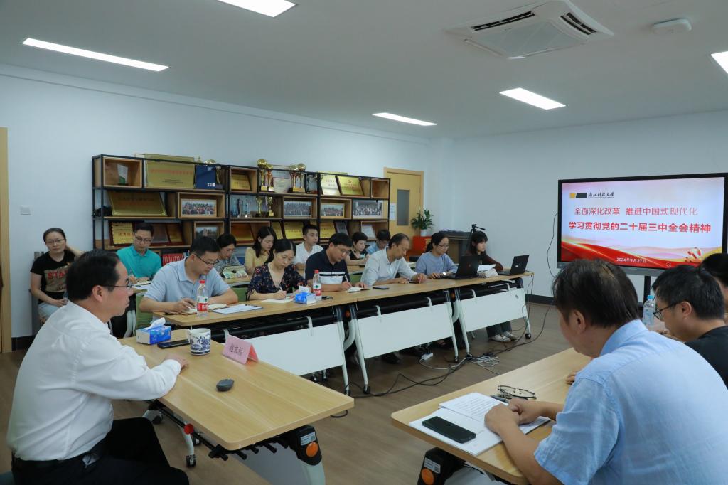 赵东福围绕深刻理解党的二十届三中全会精神,牢牢把握进一步全面深化改革的重大意义、指导思想与总目标、重大举措、重大原则等方面进行了系统宣讲和阐释。他强调,要将学习贯彻党的二十届三中全会精神同落实好习近平总书记在全国教育大会上的重要讲话精神紧密结合起来,同学习贯彻习近平总书记关于教育的重要论述一体联动起来,同贯彻落实省委十五届五次全会部署结合起来,紧紧围绕学校深化改革攻坚、推动学科登峰这一战略,以改革创新的思维和举措,破解学校发展瓶颈,以钉钉子的精神推动各项改革任务落地见效,助推学校奋力建设高水平科技大学。