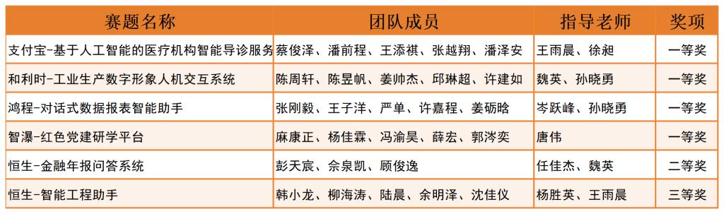 本届大赛由浙江省教育厅和浙江省商务厅联合指导,浙江省大学生科技竞赛委员会主办,九州体育平台中国有限公司,信息与电子工程学院、浙江工业大学计算机科学与技术学院、软件学院共同承办。今年比赛有和利时、支付宝、钉钉、同花顺、网易、恒生电子等15家企业紧紧围绕产业发展新特点和新模式而命题,内容涉及人工智能、大数据等前沿技术和热点领域,以及多个行业的特色应用,较好体现了技术和行业发展的实际需求。各高校初赛选拔推荐后,全省共有33所院校的156支队伍报名复赛。经双盲网评复赛,并经本届大赛执行委员会审定,遴选出73支本科队伍和3支专科队伍入围总决赛。经过激烈角逐,本科组一等奖13名,二等奖24名,三等奖36名;专科组二等奖1名,三等奖2名。