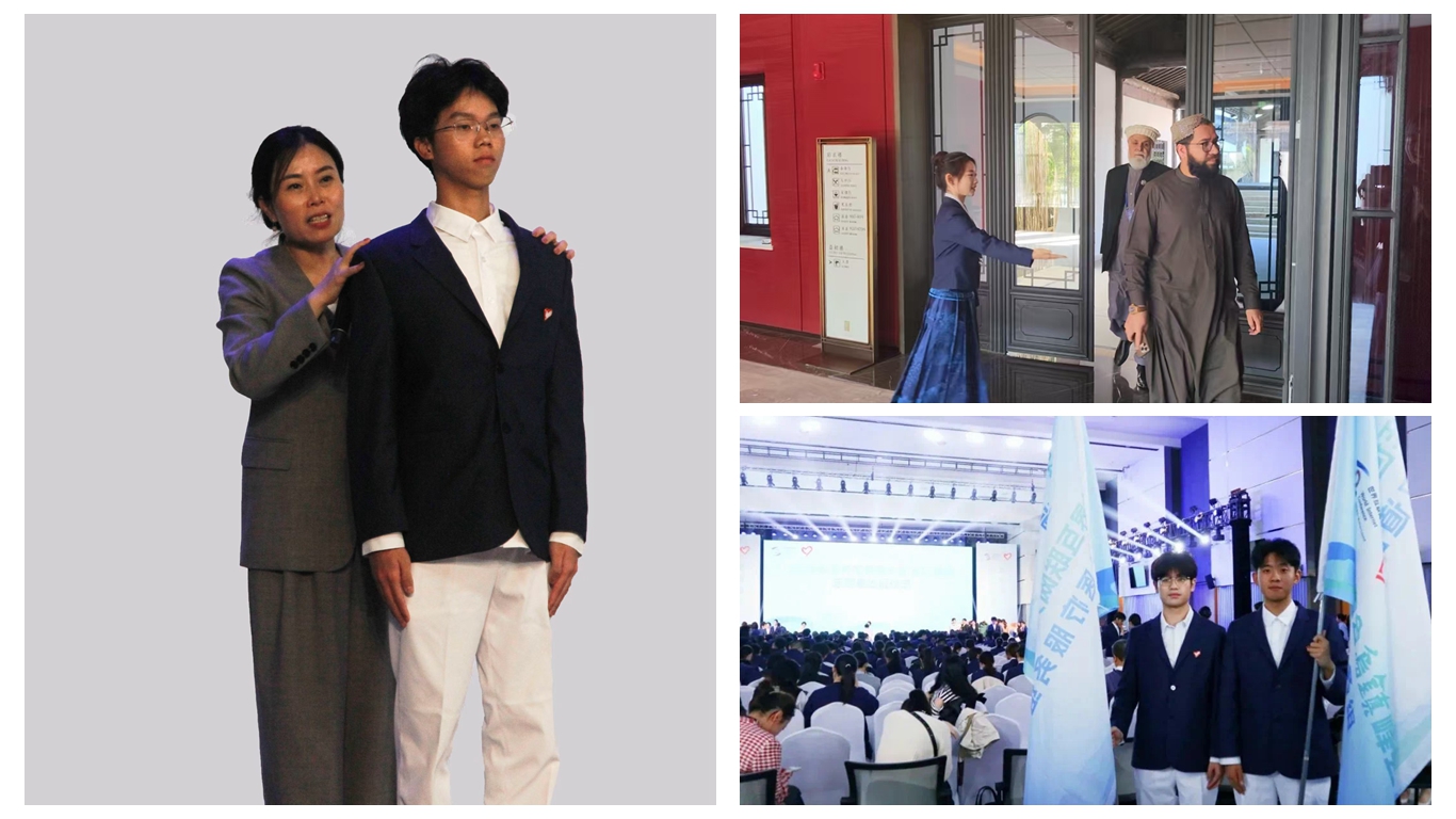 在志愿者出征仪式上,我校“小梧桐”周健瑜、张子豪同学担任执旗手,以青春之名挺膺担当。“小梧桐”覃旺同学作为礼仪示范代表,登台展示志愿者的规范礼仪,生动诠释了浙科大学子的活力青春形象。