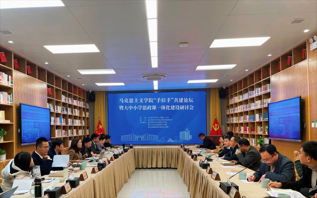 12月26日,在杭高校马克思主义学院“手拉手”共建论坛暨大中小学思政课一体化建设研讨会在我校召开。校党委委员、宣传部部长徐华军出席会议并致辞,来自省内外高校的专家学者、中小学教师代表参加研讨会。