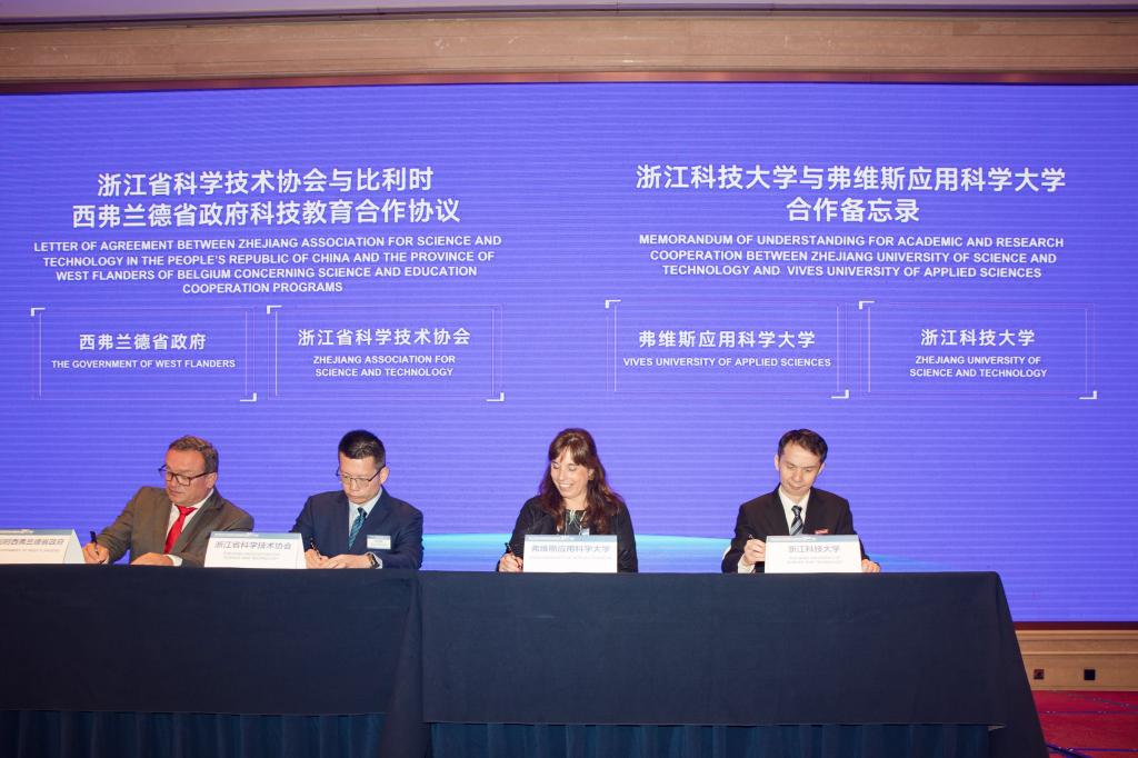 5月26日,比利时弗维斯应用科学大学校长凯西·杜威特(Kathy Dewitte)一行访问我校。校长陈建孟、副校长李其朋接待了代表团一行。学校国际处相关负责人参加会谈。28日,陈建孟与凯西·杜威特共同出席浙江省与比利时西弗兰德省结好25周年庆祝活动,并签署两校合作备忘录,标志着双方合作进入新阶段。